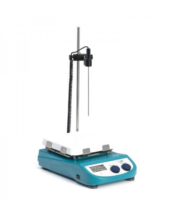 Patlamaya korunmalı, bakım gerektirmeyen sessiz DC motor yumuşak bir başlangıç ve hızlı bir duruş olanağı ile 20 litreye kadar karıştırma yapar. Seramik ısıtıcı plaka özellikle asitler ve değişik kimyasallara karşı mükemmel dayanım sağlar. Kolay temizlenir, kolay çizilmez, darbelere dayanıklıdır, mükemmel ve homojen ısı iletimine sahiptir. Gövdeye gömülü olan ısıtıcı sistem ve seramik kaplı üst tabla mükemmel ısı transfer olanağı sağlayarak ayarlanan sıcaklığa çok hızlı erişime olanak verir. Aluminyum alaşım dış gövde tüm mekanik ve elektronik parçalara dış etkenlere karşı maksimum güvenlik sağlar ve uzun kullanım garantisi verir. 100 ile 1.500 rpm arasında elektronik olarak kontrol edilebilen hız kararlı ve etkin karıştırmayı sağlar. PID sıcaklık teknolojisi oda sıcaklığından 550°C’a kadar mükemmel sıcaklık kontrol olanağı sunar. Karıştırıcı gövdesine monte edilen taşıma standına bağlı olan PT1000 sıcaklık sensörü ile +/- 0,2°C hassaslıkta sıcaklık kontrolü olanağı sağlar. Aşırı ısınma koruma algılayıcısı sıcaklığın herhangi bir neden ile 580°C’ı aşması durumunda devreyi kapatır. Sıcak yüzey algılayıcısı karıştırıcı kapandığında bile tabla sıcaklığını kontrol eder. Tabla sıcaklığının 50°C’ı aşması durumunda LCD göstergede “HOT” uyarısı yanar. Geniş LCD panelde eş zamanlı olarak ayarlanan ve ulaşılan sıcaklık ve hız değerleri gözlenebilir. PT 1000 sıcaklık sensörü, taşıma borusu ve bağlantı kıskacı ile teslim edilir.