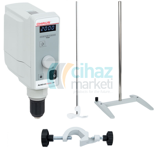OHAUS e-A51ST020 SET Mekanik Karıştırıcı, 25 litre kapasite, 30-2000 rpm hız, 20 Ncm Tork Cihaz + Stant + Tutucu + Uç dahil Komple Set