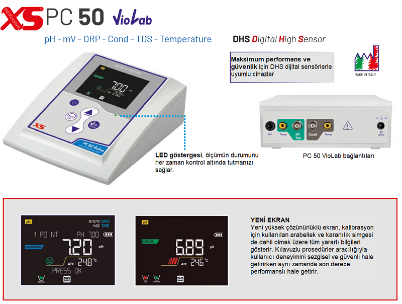 XS Instruments PC 50 VioLab Masaüstü Multiparametre Ölçer + 2301T İletkenlik Hücresi + XS 201 T pH Elektrotu